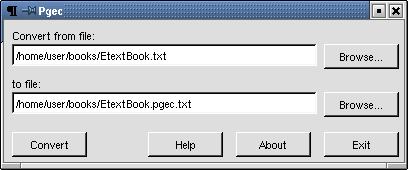 Pgec is a simple converter for documents written in Project Gutenberg Etext format. It replaces "EndOfLine" signs (cr/lf) in paragraphs with spaces. Every paragraph in converted file is written in one line. Pgec is distributed under GNU General Public License. Those, who would like to get more in-depth information about Pgec, are wellcome to visit it's project group page on SourceForge. Why to use it?Project Gutenberg Etext lines are ca. 65 characters long. At the end of each line is "EndOfLine" sign. This format makes editing of text (almost) impossible. Word processors like StarOffice, KWord, AbiWord, MS Word use "EndOfLine" characters for marking the end of a paragraph, where in PG Etext there can be many "EndOfLine" signs in one paragraph (one on every 65 characters). For more precise info on PG Etext click here. Pgec removes all the "EndOfLine" signs in paragraphs, and replaces them with spaces. The converted text is suitable for editing in word processors. However, not all text looks good, if paragraphs are written in one line. Pgec can be successfully applied to most novels, but converting poetry books is not such a good idea. Screenshot![]() DownloadLinux version: pgec-0.1.0-i386.tar.gz Windows version: pgec-0.1.0-setup.exe FeedbackComments are wellcome. Send them to gzorc@users.sourceforge.net. Links